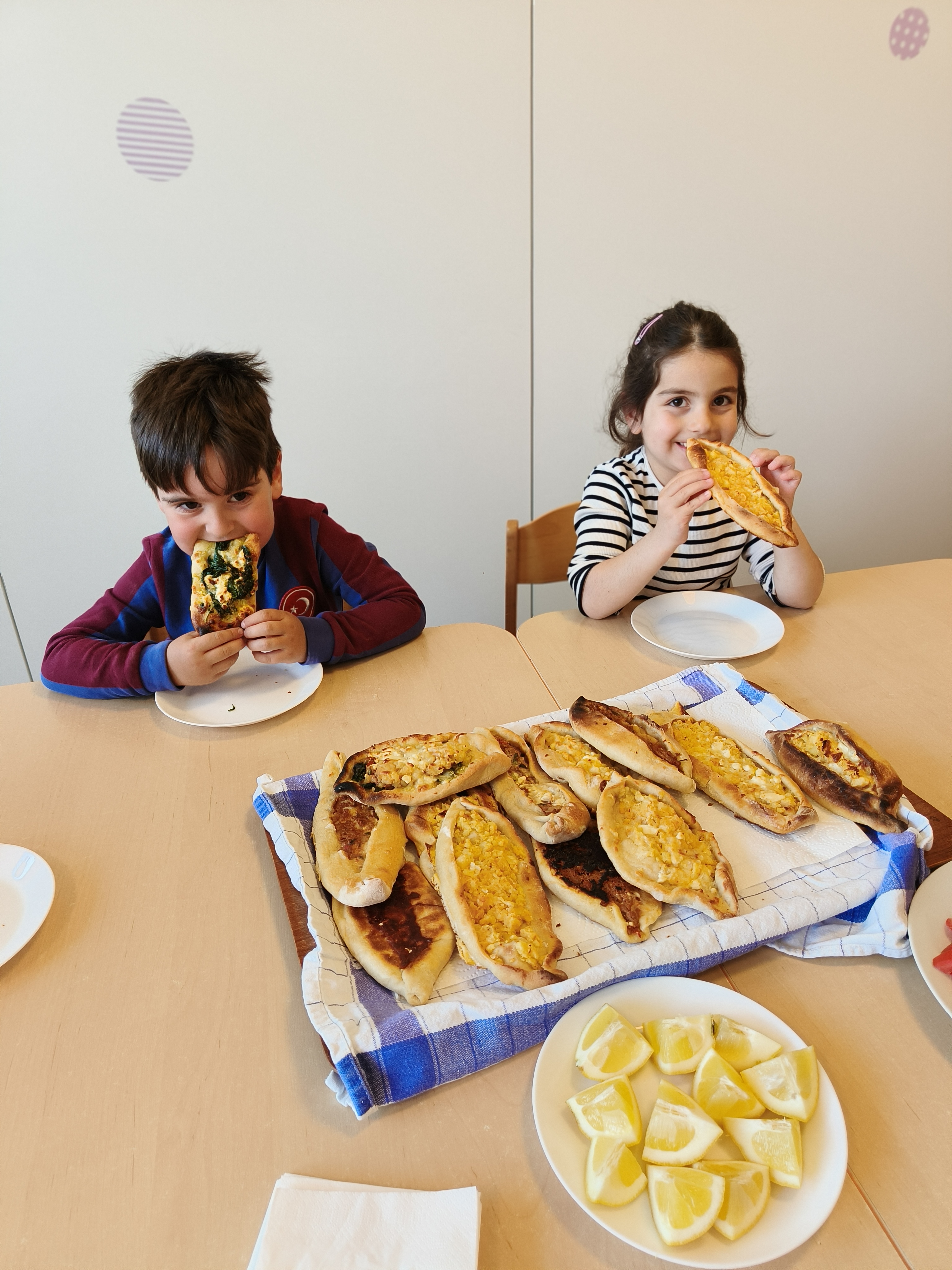 Die Kinder genossen nicht nur neue Geschmäcker, sondern auch die traditionelle Esskultur: Sie aßen die Pide wie üblich mit den Händen, ergänzt durch frische Zutaten wie Tomaten, Salat, Petersilie und Zitronensaft. Dazu gab es Ayran, ein typisch türkisches Joghurtgetränk.