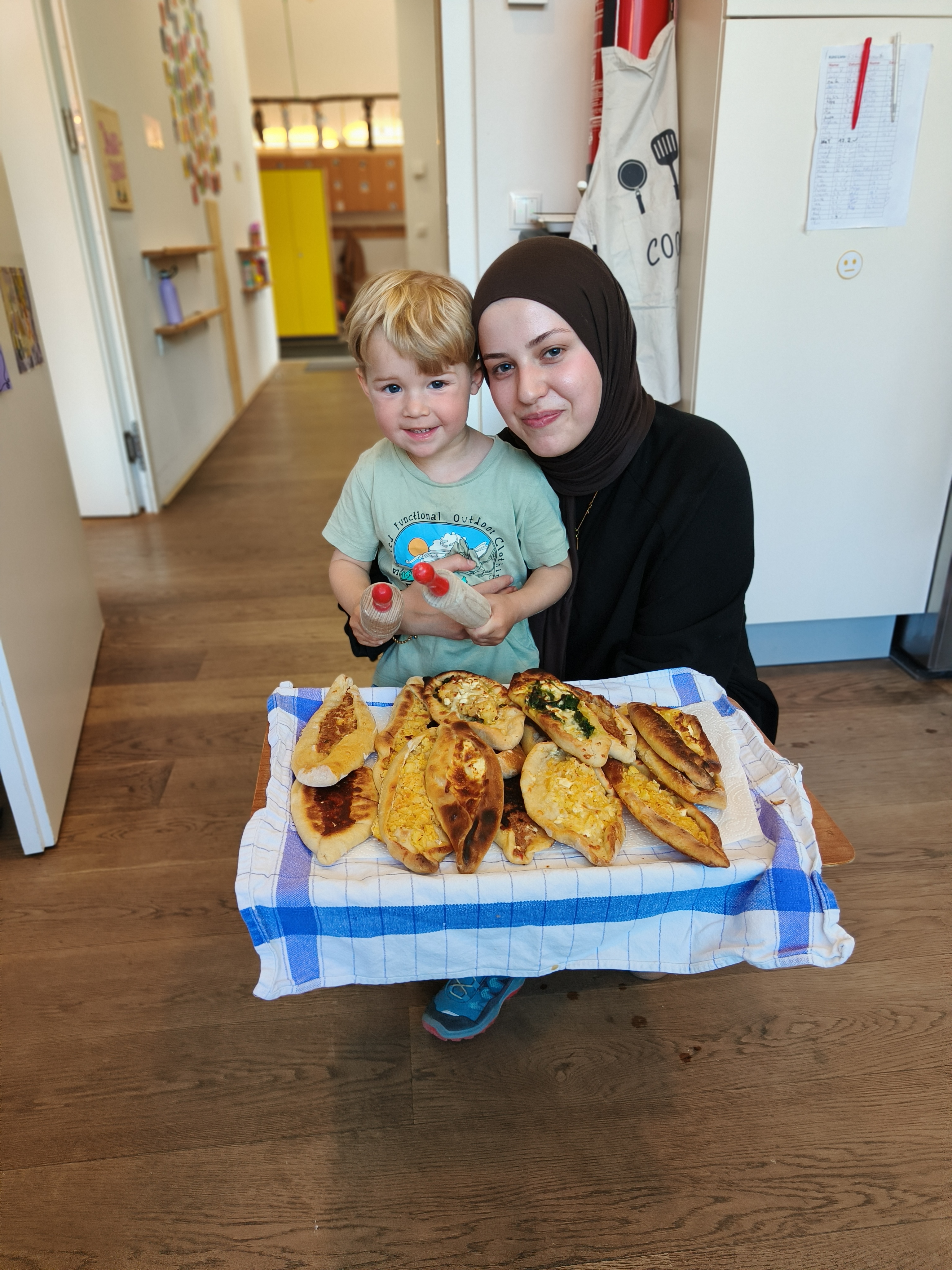 „Genau wie bei den verschiedenen Zutaten auf dem Tisch geht es uns um das Gemeinsame, das uns verbindet: die gemeinsame Zubereitung, das gemeinsame Essen – und die Kinder sollen auch Spaß haben“, sagt Funda Simsec vom Kindergarten Dorf, die den Nachmittag gemeinsam mit ihrer Kollegin Pinar Yardim gestaltete.